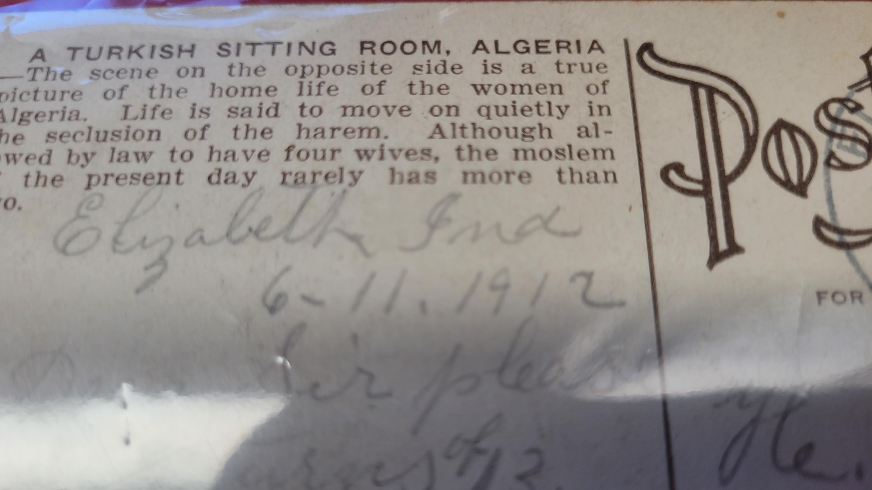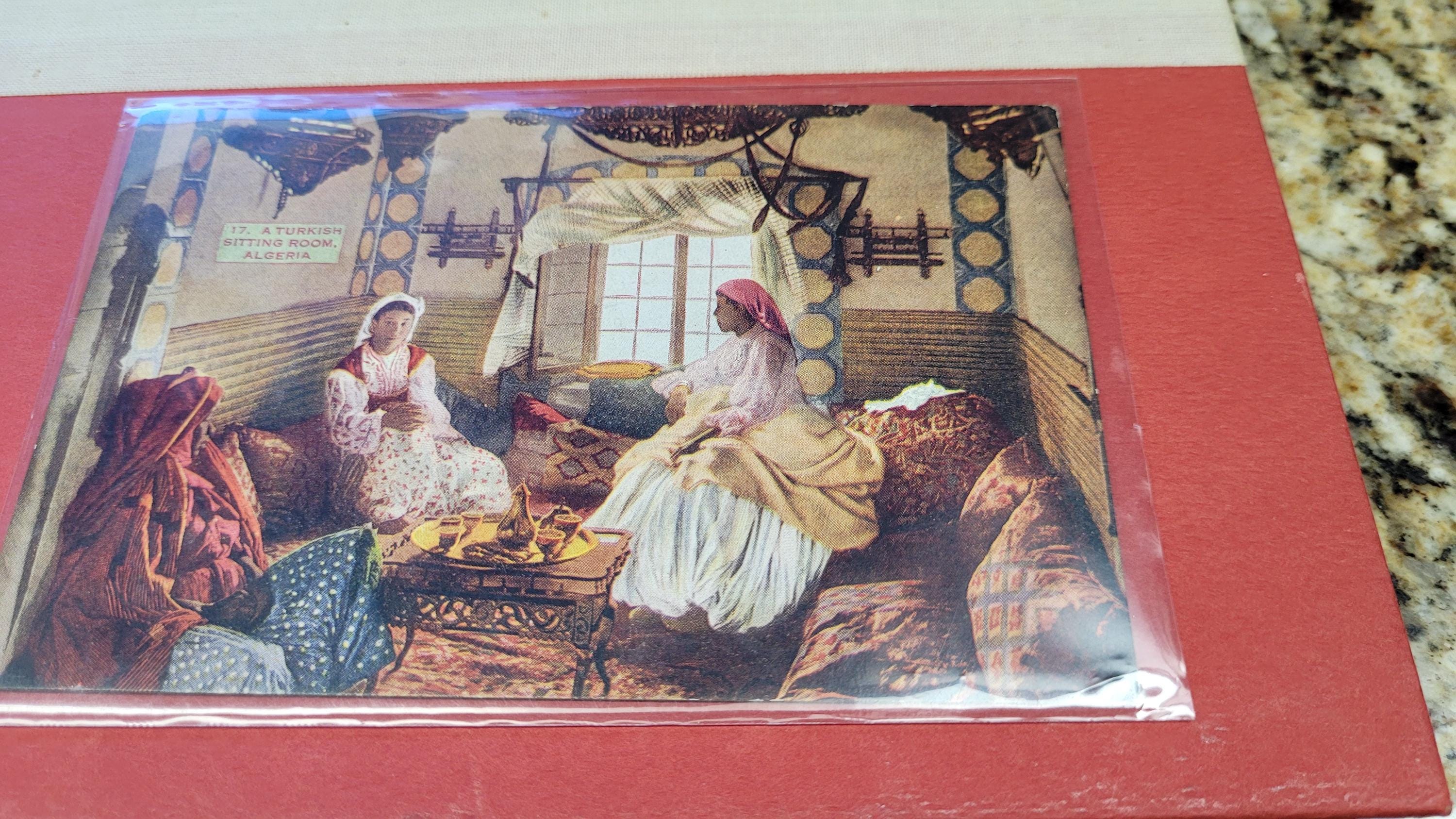 Vintage 1900s Postcard – "In a Turkish Sitting Room, Algiers" – Hand-Tinted Ethnographic