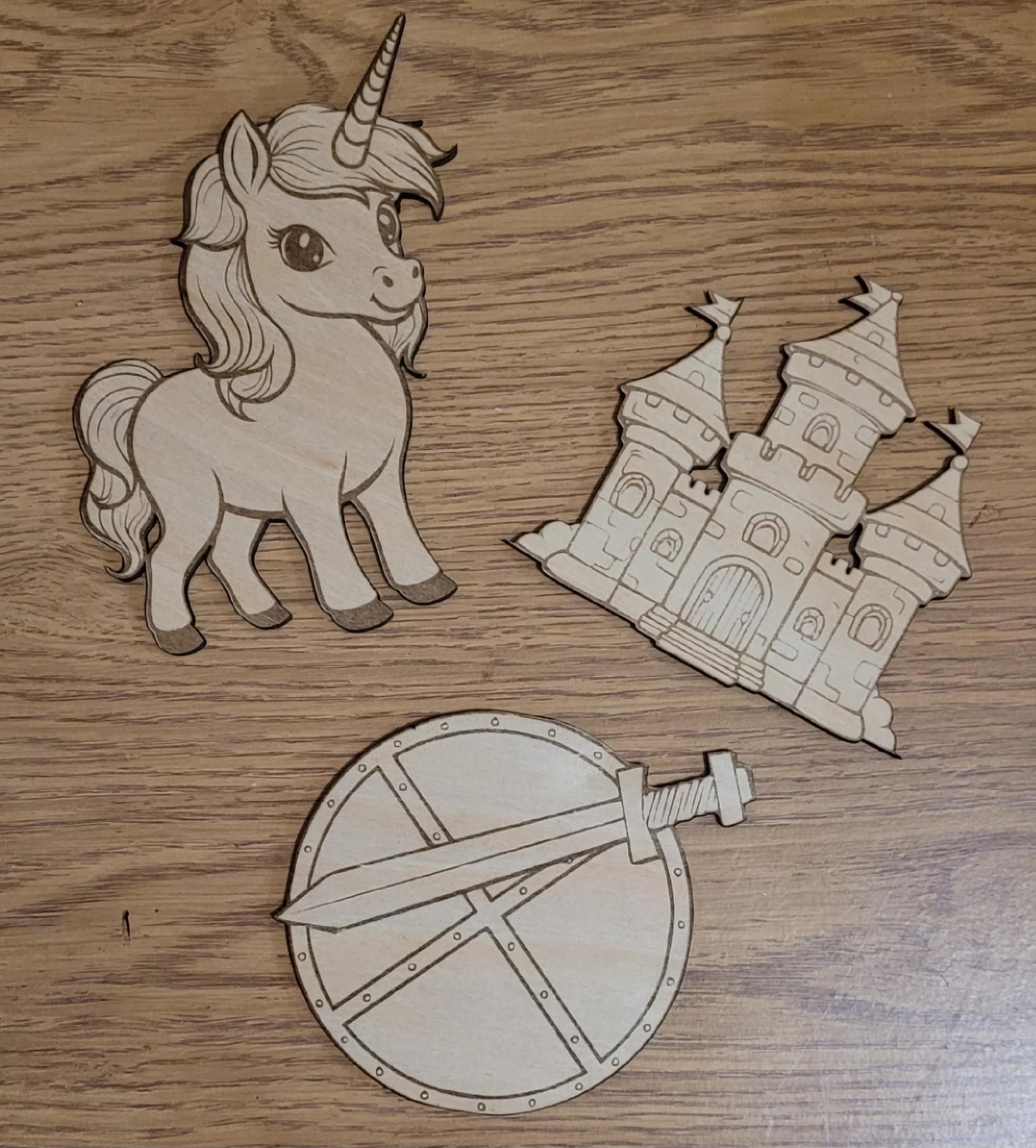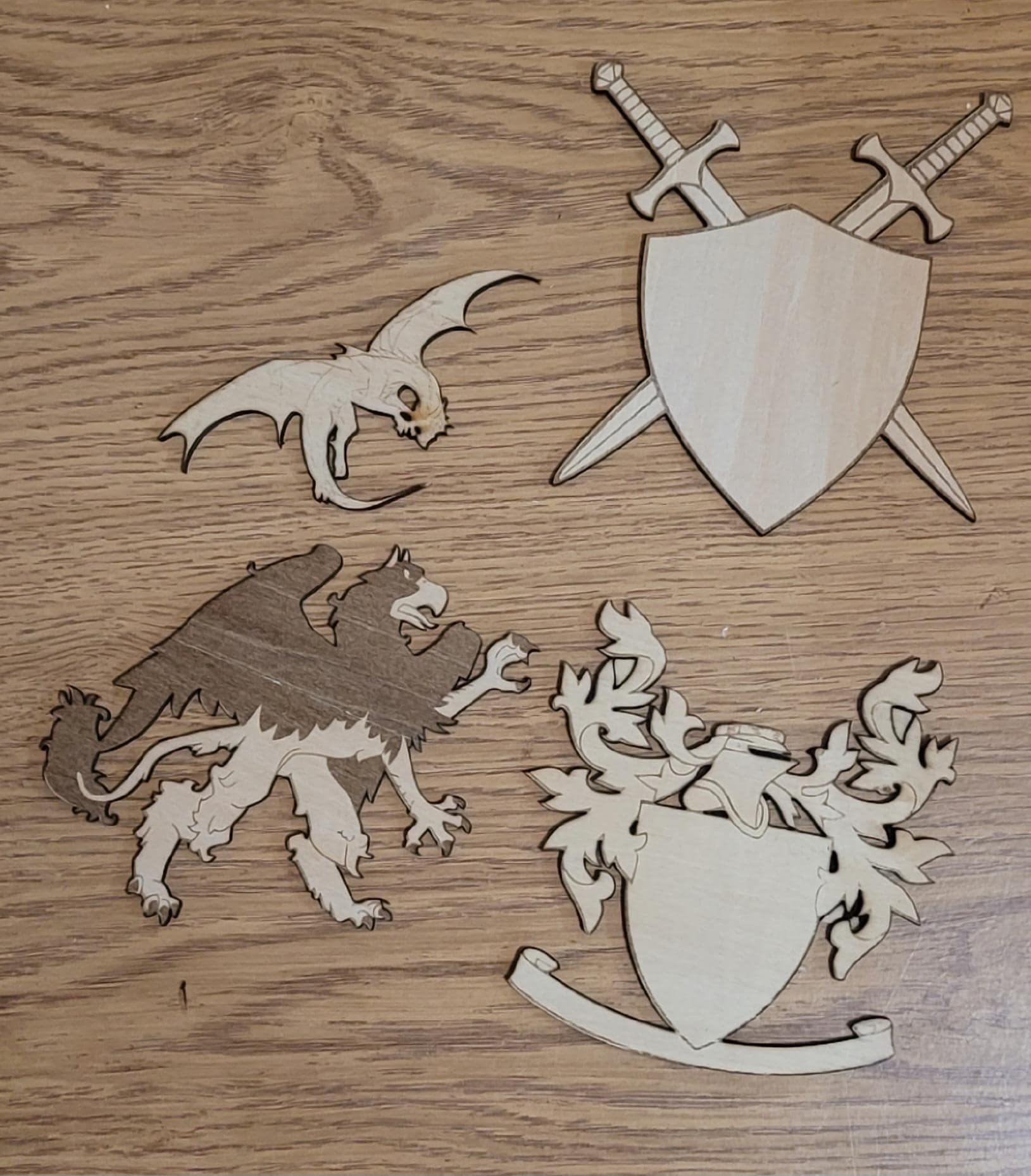 Medieval Fantasy Laser Engraved Wood Cutouts – Detailed Mythical Craft Shapes for DIY Projects